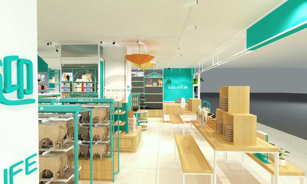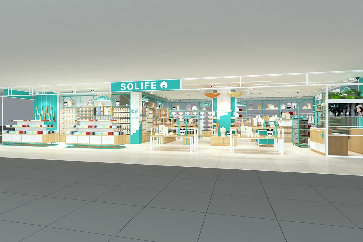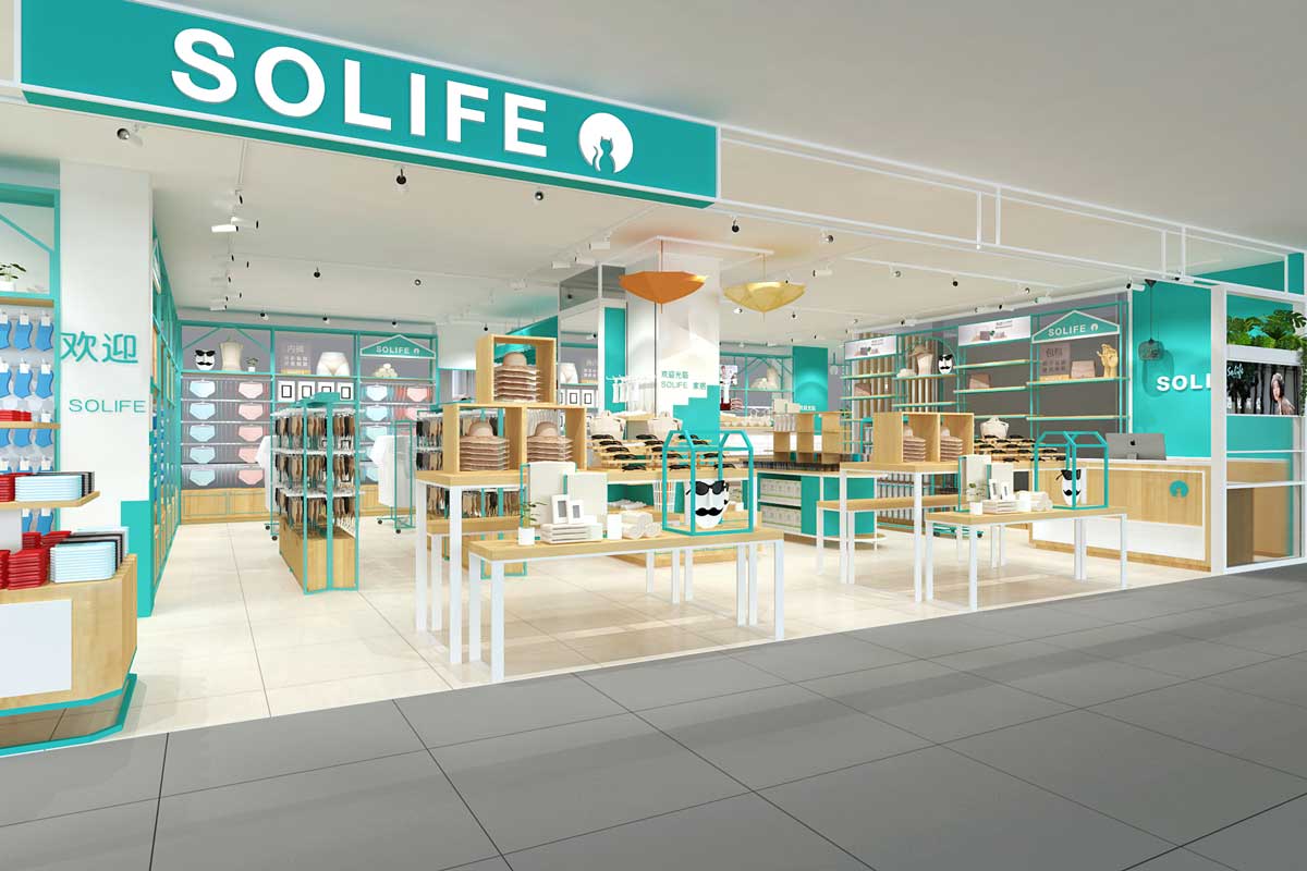 solife是依托于高橋展廳而產(chǎn)生的家居用品品牌,產(chǎn)品以小件家居日用品為主。2019年,solife確定了從批發(fā)到零售的品牌定位,而品牌形象的改變是必不可少的。2019年3月,solife和永祺達成合作,永祺設(shè)計師對于批發(fā)到零售的形象轉(zhuǎn)變頗有經(jīng)驗,為solife打造首家形象店,提供了專業(yè)空間設(shè)計,工程施工,展柜制作等服務(wù)。