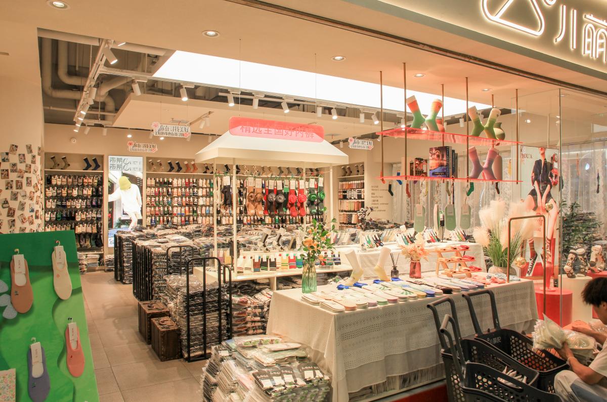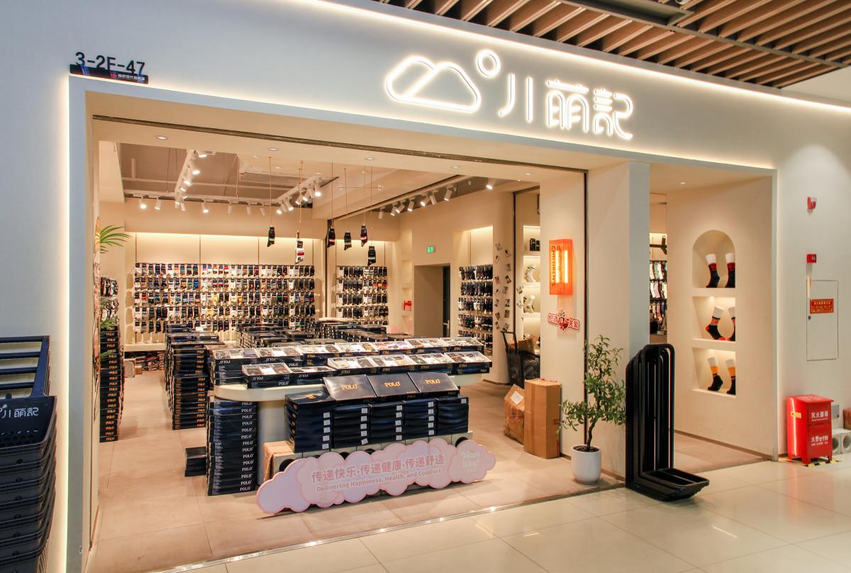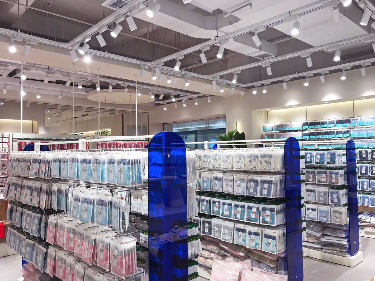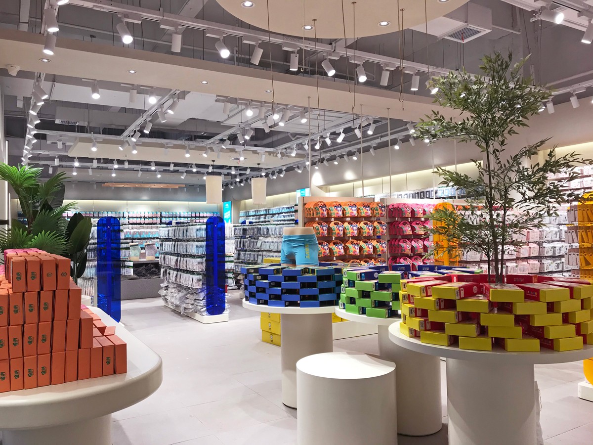 于萌記這類的內(nèi)衣服品牌,終端門店形象格外需要吻合女性為主的消費群體需求,整體的氛圍感與細(xì)節(jié)的精致感是必不可少的設(shè)計元素。對此,該案例門店形象以聚射燈光與照明燈光搭配渲染空間氛圍,以圓與方的幾何擺臺強化空間層次,越簡約越精致的空間效果,提高了商品陳設(shè)的美感,營造出店面更輕松愉悅的消費環(huán)境