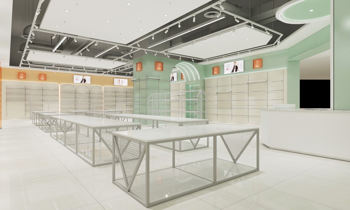 該案例門店形象以聚射燈光與照明燈光搭配渲染空間氛圍,以圓與方的幾何擺臺(tái)強(qiáng)化空間層次,越簡(jiǎn)約越精致的空間效果,提高了商品陳設(shè)的美感,營(yíng)造出店面更輕松愉悅的消費(fèi)環(huán)境